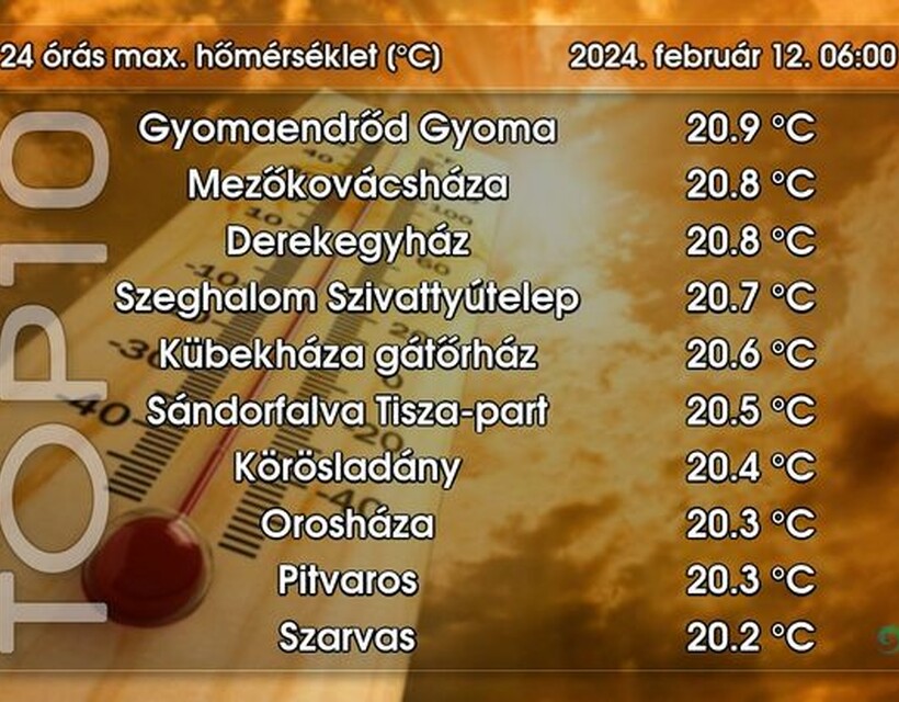 A HungaroMet beszámolója szerint a Dél-Alföldön délelőtt még sütött a nap és viharos déli szél fújt, csak délután növekedett meg a felhőzet. Ez elég volt, hogy ott 21 fokig melegedjen a levegő.